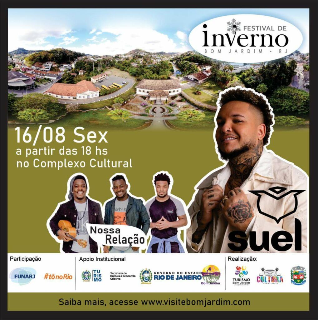 Festival de Inverno Sexta 18h00 – DJ20h00 – Suel22H00 – Nossa Relação Sábado 19H00 – Wanderson Terra Sax20h00 – Banda Etiqueta22h00 – Isabella Taviani Domingo 09h00 – Encontro de Carros Antigos13h00 – Encontro de Motociclistas14h00 – Teo HC16h00 – Bando de Blues18h00 – HELF